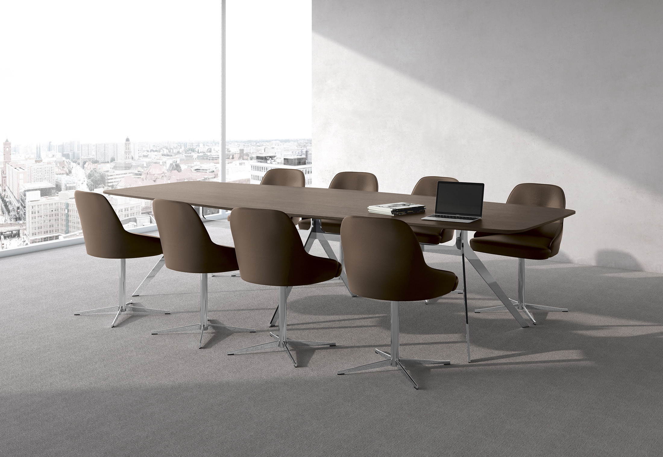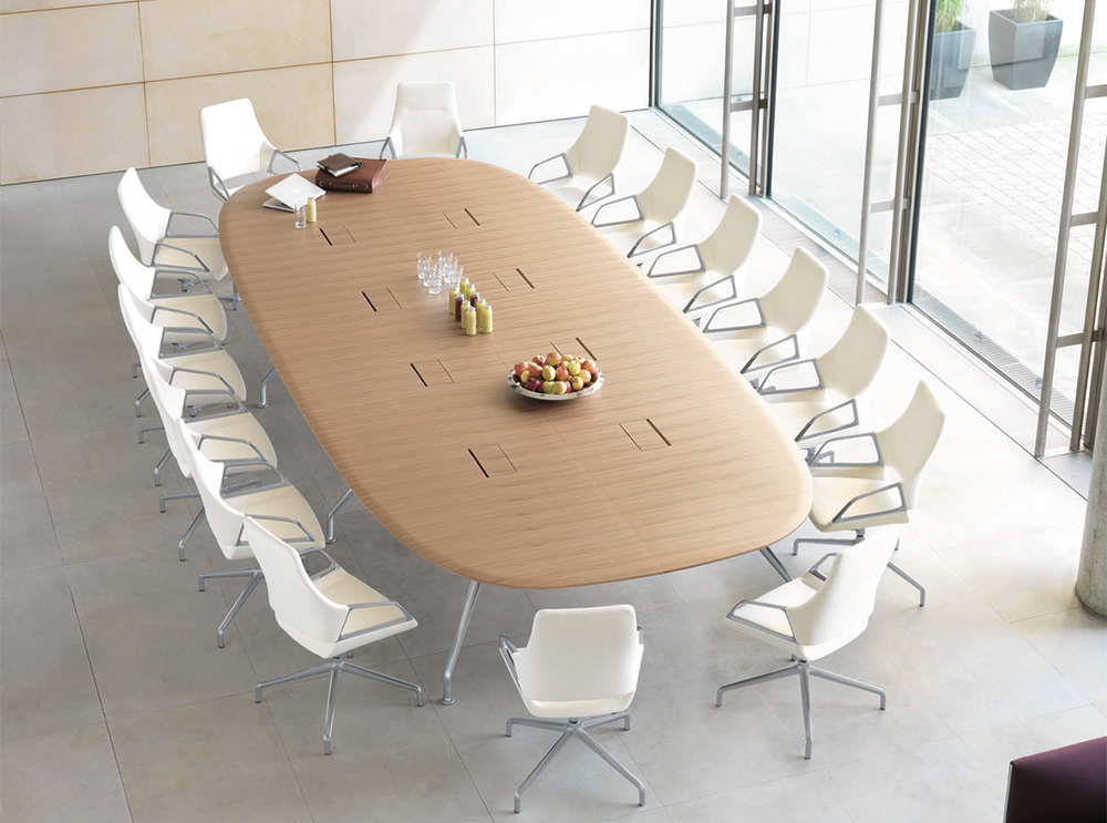 Die Meeting-Reihe unterstützt die Kommunikation im Büro. Connect Meetingpoints laden in Mittelzonen von Open-Space-Büros zu Projekt- und Teamarbeit jenseits des Arbeitsplatzes ein. Ob im Stehen oder Sitzen – Versammlungen um die elektrifizierbaren Möbel mit standardmäßiger Ablage unter der Arbeitsfläche regen die Ideenfindung an. Alle Medienanschlüsse von Monitoren und Rechnern können in die Arbeitsfläche integriert werden, die weitere Verkabelung erfolgt unsichtbar. Conference Besprechungstische in unterschiedlichen Geometrien erhalten Sie neben der starren Variante ebenfalls in elektromotorisch höhenverstellbarer Ausführung. So ermöglichen Sie wechselnde Besprechungssituationen, verhindern Müdigkeit und fördern effektive und lebendige Vorträge, Workshops, Seminare und Schulungen.