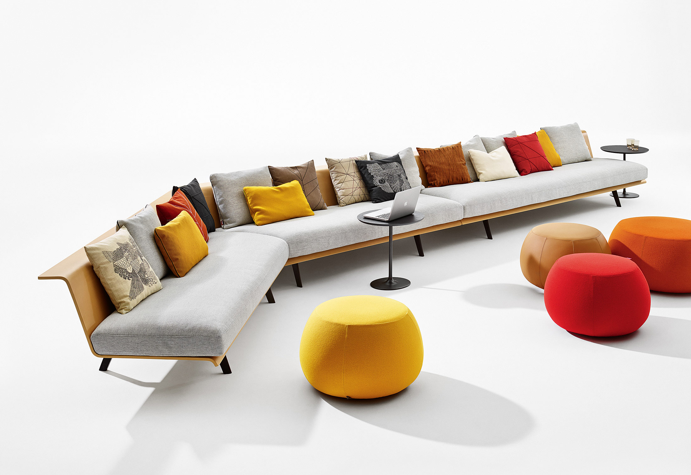 Grafisch, leicht und fließend — das modulares Sofa-System Zinta zeichnet sich durch ein harmonisches Nebeneinander von glatten Linien und warmen Materialien aus. Der tiefe Sitz unterstützt perfekt das lockere Zurücklehnen des Körpers. Das System gliedert sich dank der variierbaren Längen und sanft abgerundeten Kanten auf elegante und geschickte Weise in seine Umgebung ein. Es kann als einfaches Einzelsofa oder als großflächiges, ordnendes Prinzip in einem offenen Raum eingesetzt werden.